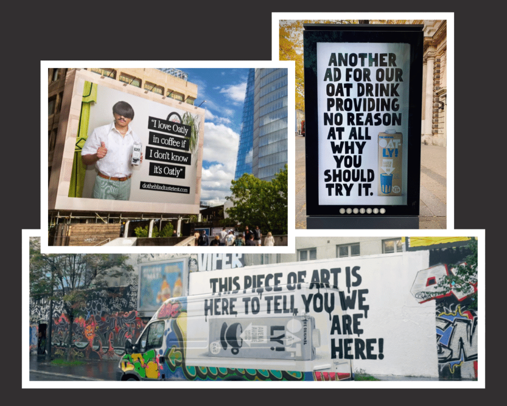 Từ những ugly ads của Booking gây sốc vì xấu quá mà vẫn viral, đến Oatly với billboard nhìn như bản nháp lỗi font, bố cục lộn xộn:
